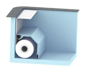 De lamellen worden op de bodem van het zwembad opgerold. Optioneel kan de rol worden afgedekt met een polyester kap. De polyester kap wordt op een balk (100x50mm) en een buis (diameter 139,7mm) geklikt. Deze laatste dient ook als geleiding voor de lamellen. Voor de polyesterkap geldt een beperking in de breedte van 6m en een beperking in de lengte van 14m.
